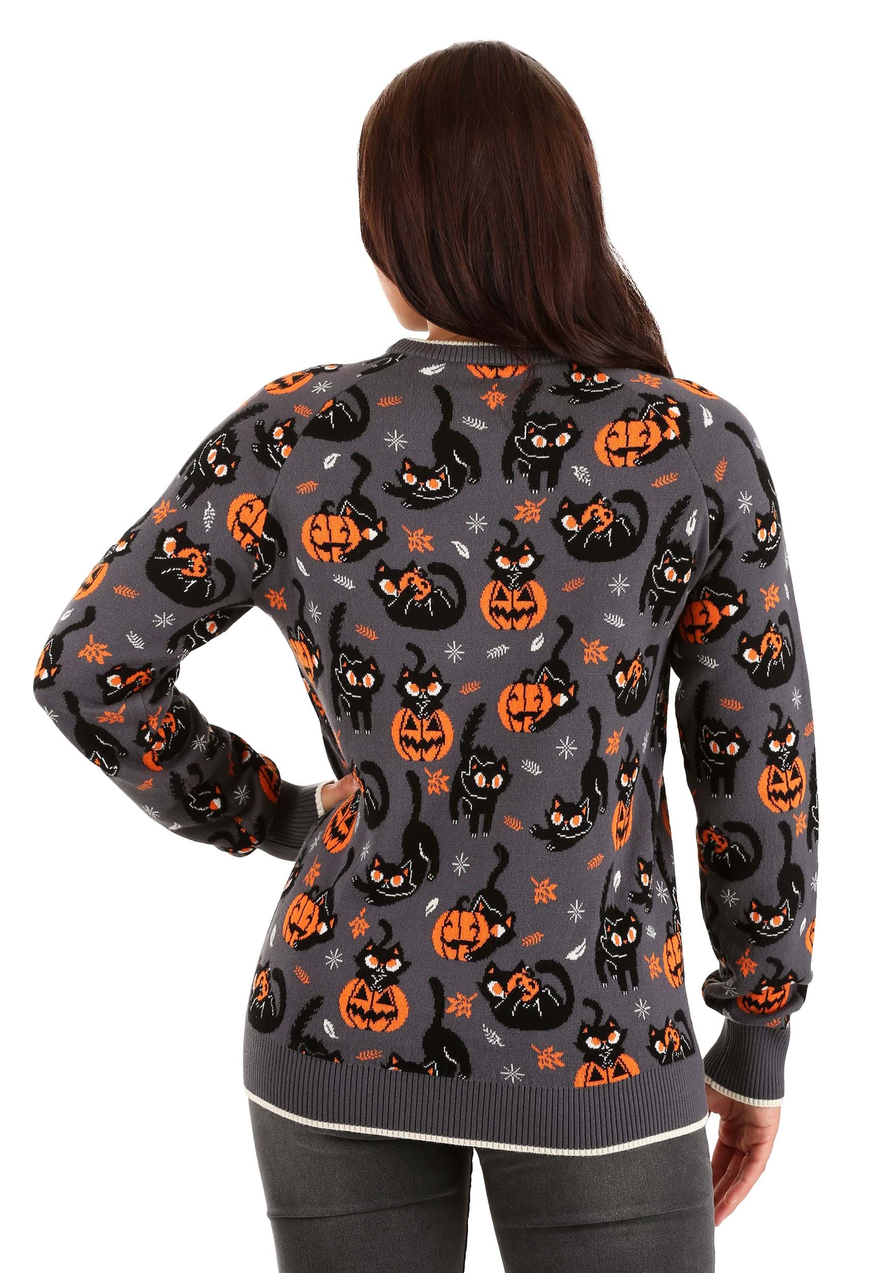This is an Adult Quirky Kitty Halloween Sweater.