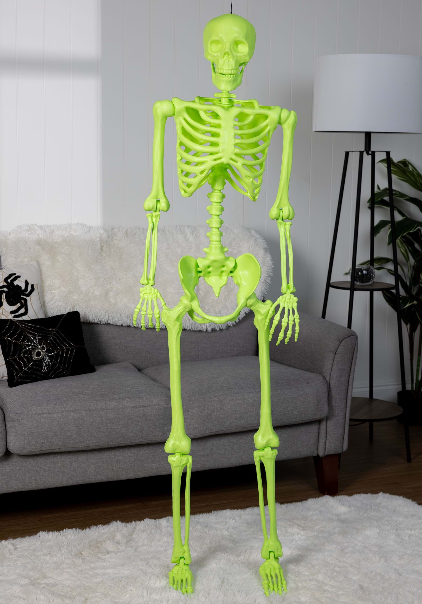 This five-foot-tall skeletal scene-stealer is molded in bold neon green—because sometimes the undead just want to stand out. His limbs are connected with hinge joints, so you can pose him however you like. Casual wave? Intense jazz hands? Existential shrug? He’s down for all of it.