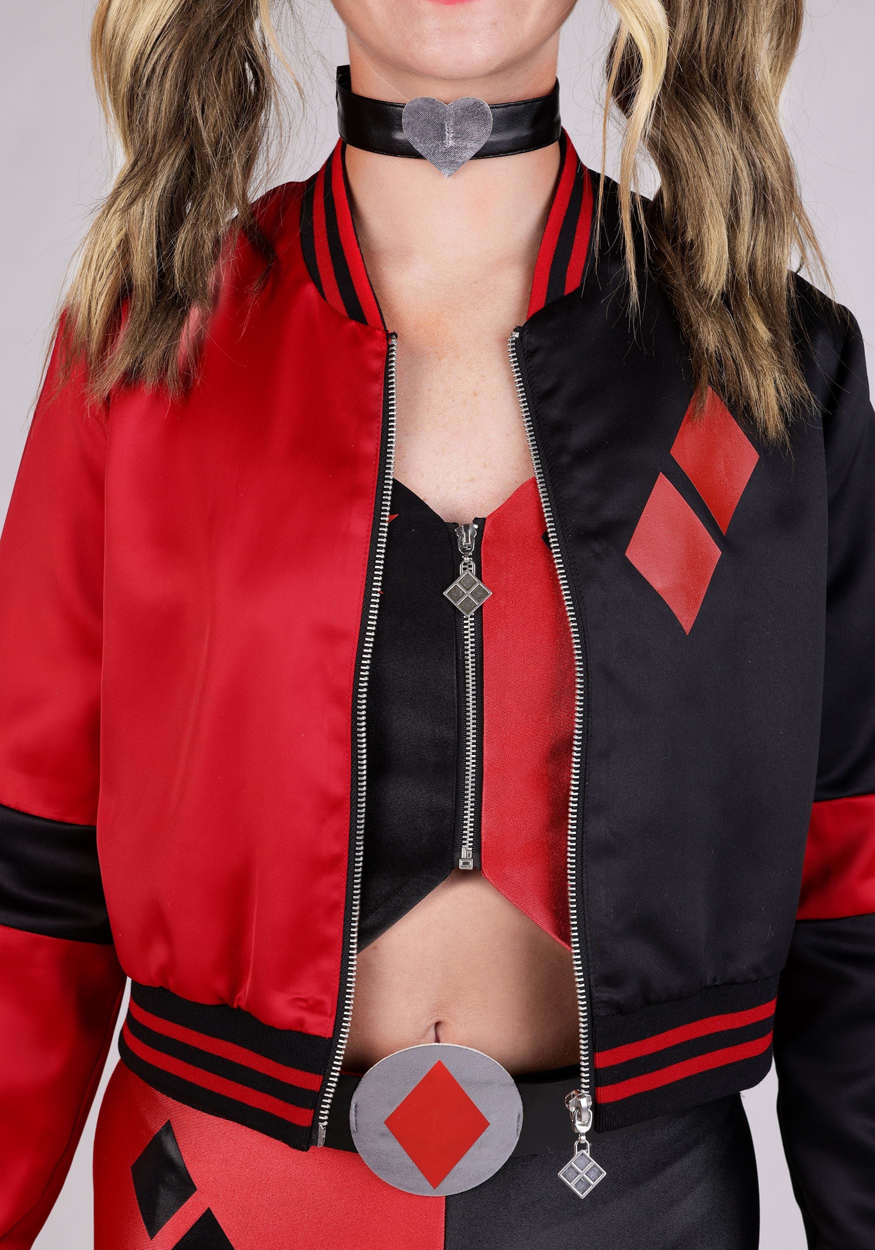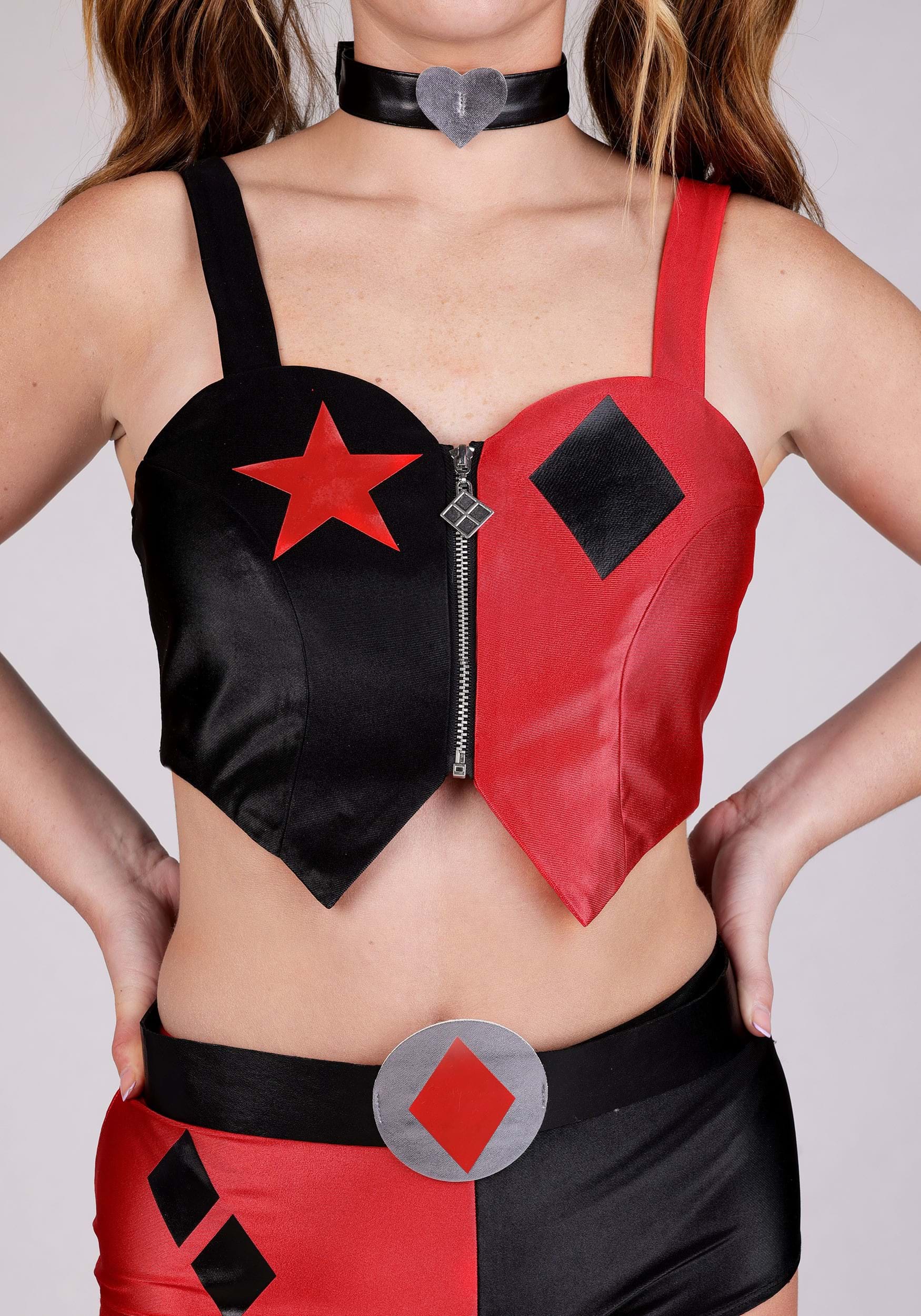 This is an exclusive Women's Deluxe Harley Quinn Costume Outfit.