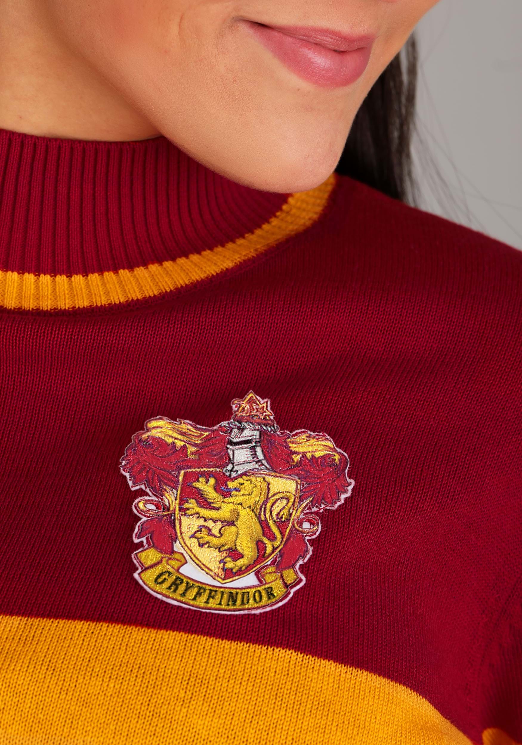 This officially licensed sweater is made exclusively in our design studio, and it features color block stripes in Gryffindor's house colors — crimson and gold — a mock turtleneck, and the Gryffindor crest on the chest.
