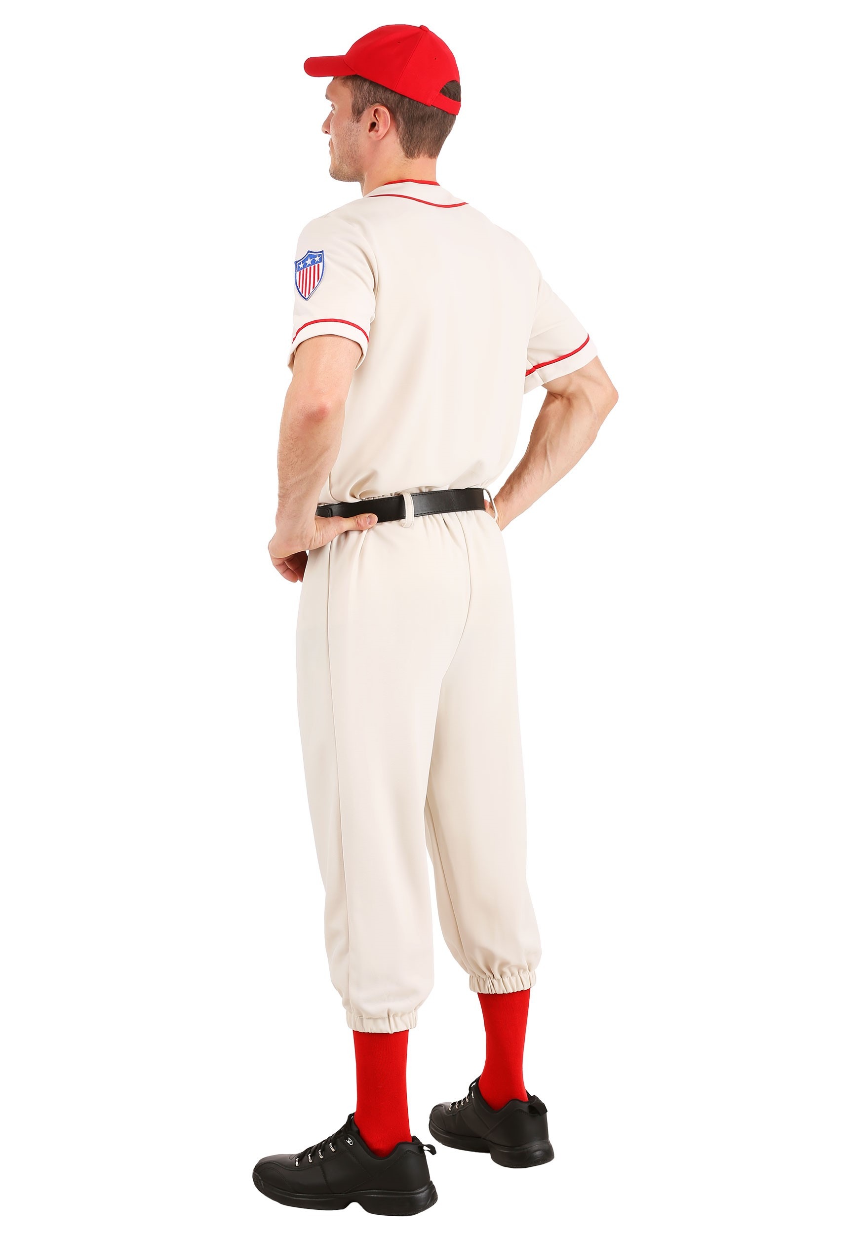 This men’s baseball costume comes with everything you need for a successful at-bat this Halloween. The baseball style shirt buttons up the front and has high-quality patches on the chest and sleeve. The front patch says A League of Their Own. The costume also comes with baseball pants that have elastic at the waist and bottom of the legs for a comfortable fit and classic look. The pants have belt loops and come with a faux leather belt with buckle. Round the bases of your look with the baseball socks and cap that adjusts in the back with Hook and Loop fastener. Whether you are going out to the ballgame with the rest of your team or playing solo, this costume is sure to be the talk of the diamond this Halloween.