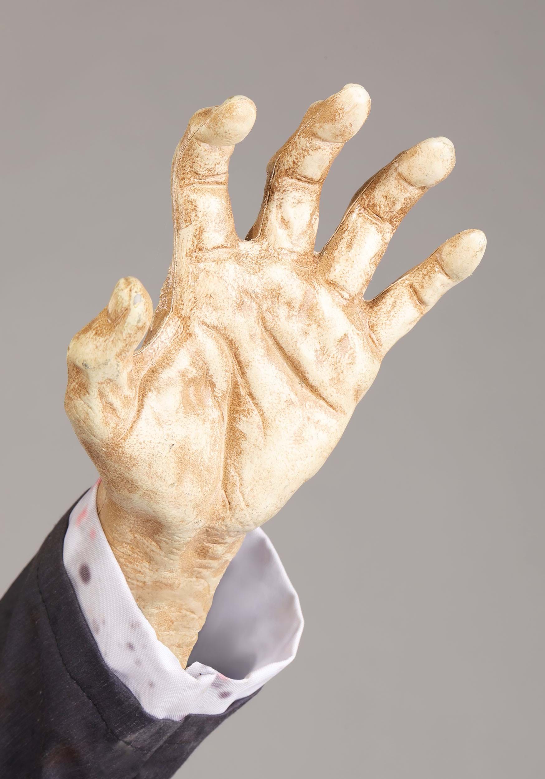 Meet Hopps the Dismembered Zombie, the terrifyingly awesome animatronic that's dying to lurch into your Halloween display! With a mangled arm, torn suit, and glowing yellow eyes, he's the undead office worker who just won't quit. Whether he's looking for brains or just trying to finish that last email, one thing's for sure—this guy is here to haunt!
