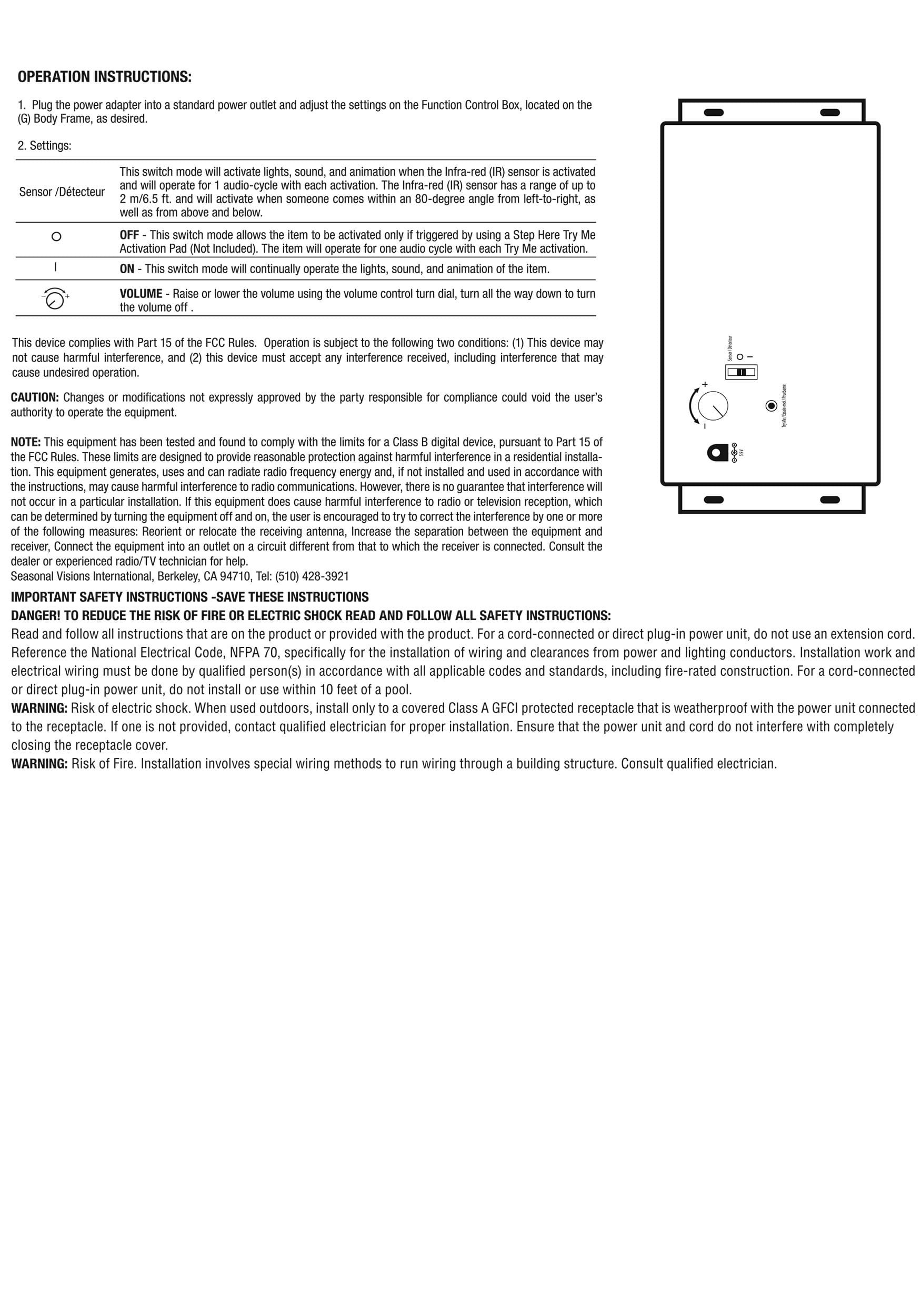 - Volume control, on, off/try me button and motion sensor mode ( can be activated using step pad, sold separately )