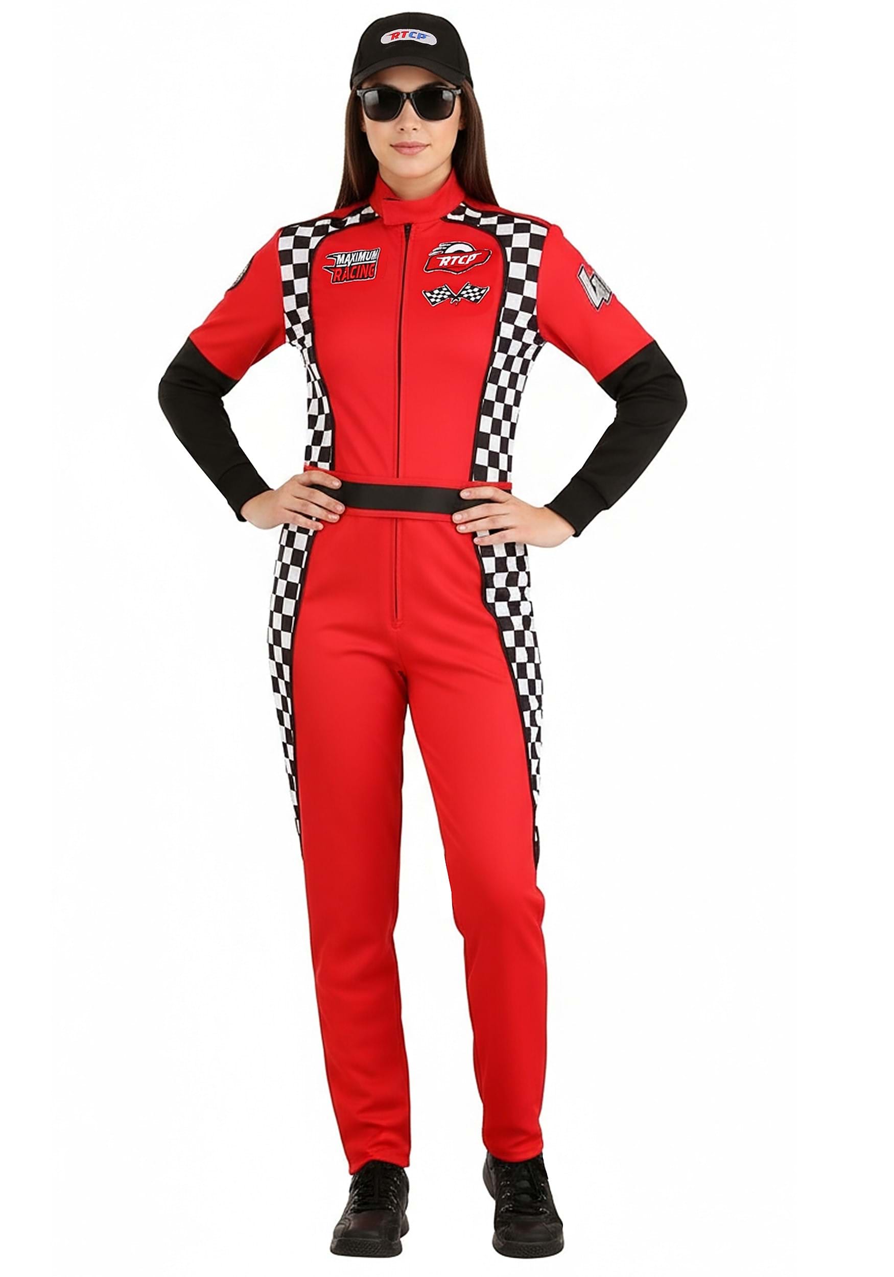 - Main body red, sleeve, and cuff: 100% polyester, Main body black and white textile: 97% polyester, 3% cotton