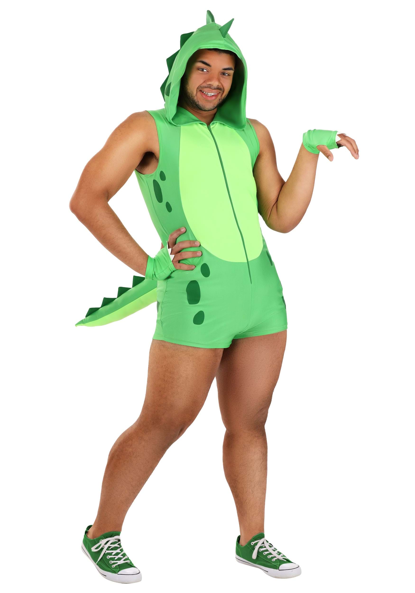 This is an exclusive Plus Size Sexy Dino Romper Men's Costume.