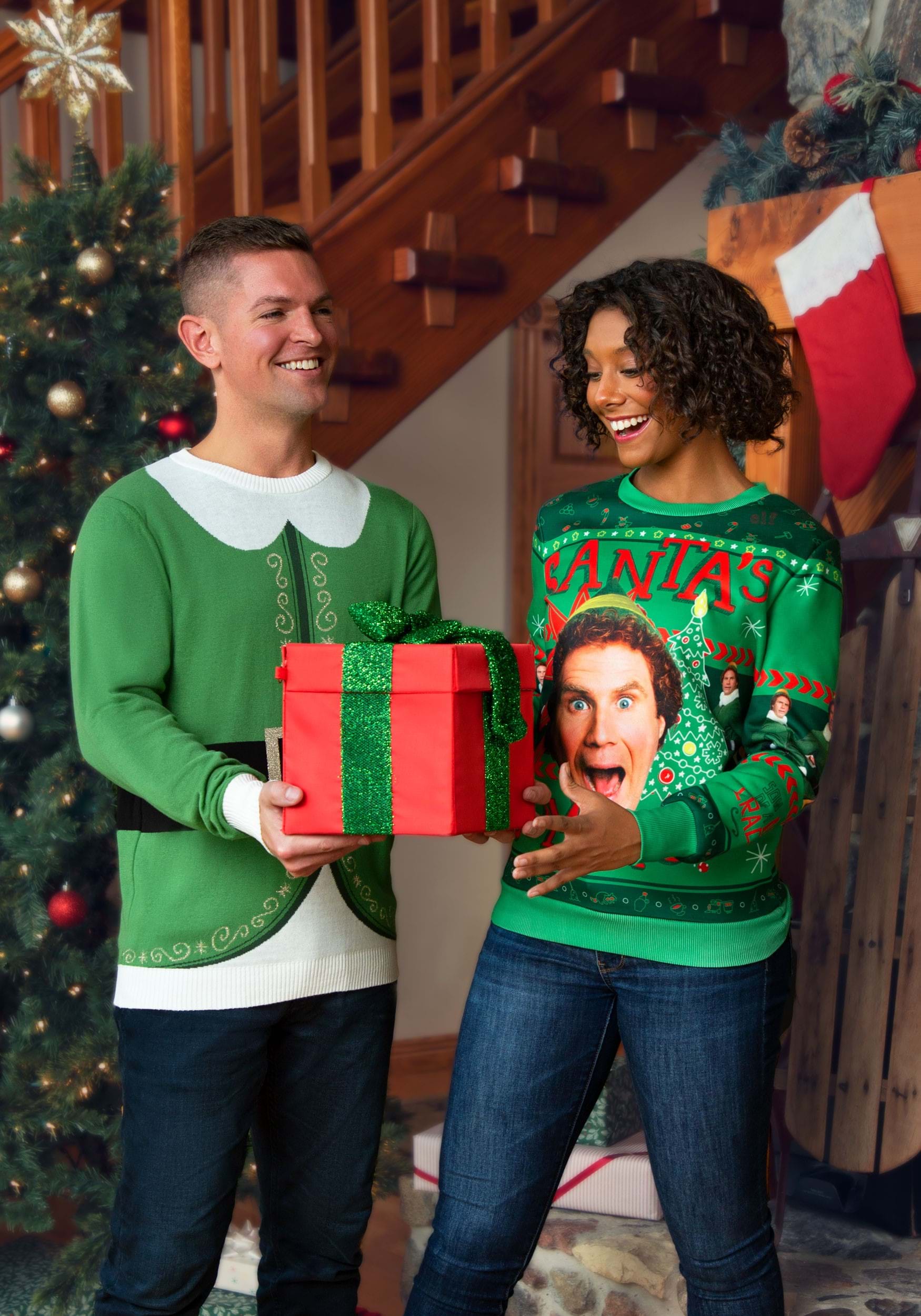Our Adult Santa's Coming Elf Ugly Sweater is the perfect way to celebrate holiday cheer and one of your favorite flicks. Designed by our own team of costume and apparel crafters, it captures that iconic movie moment and has sincere ugly sweater styling so you can sport a signature ugly look for all of your favorite holiday moments.