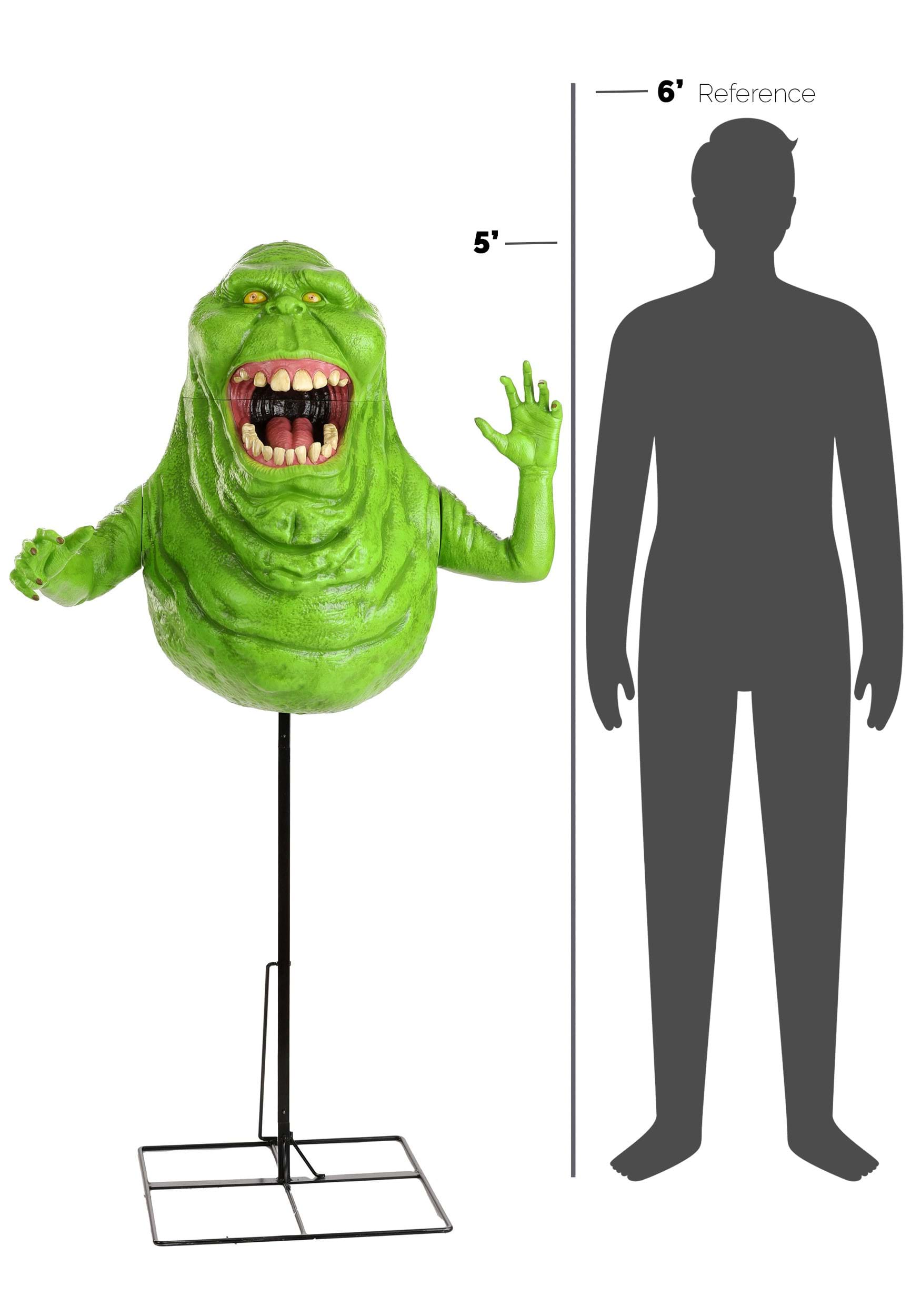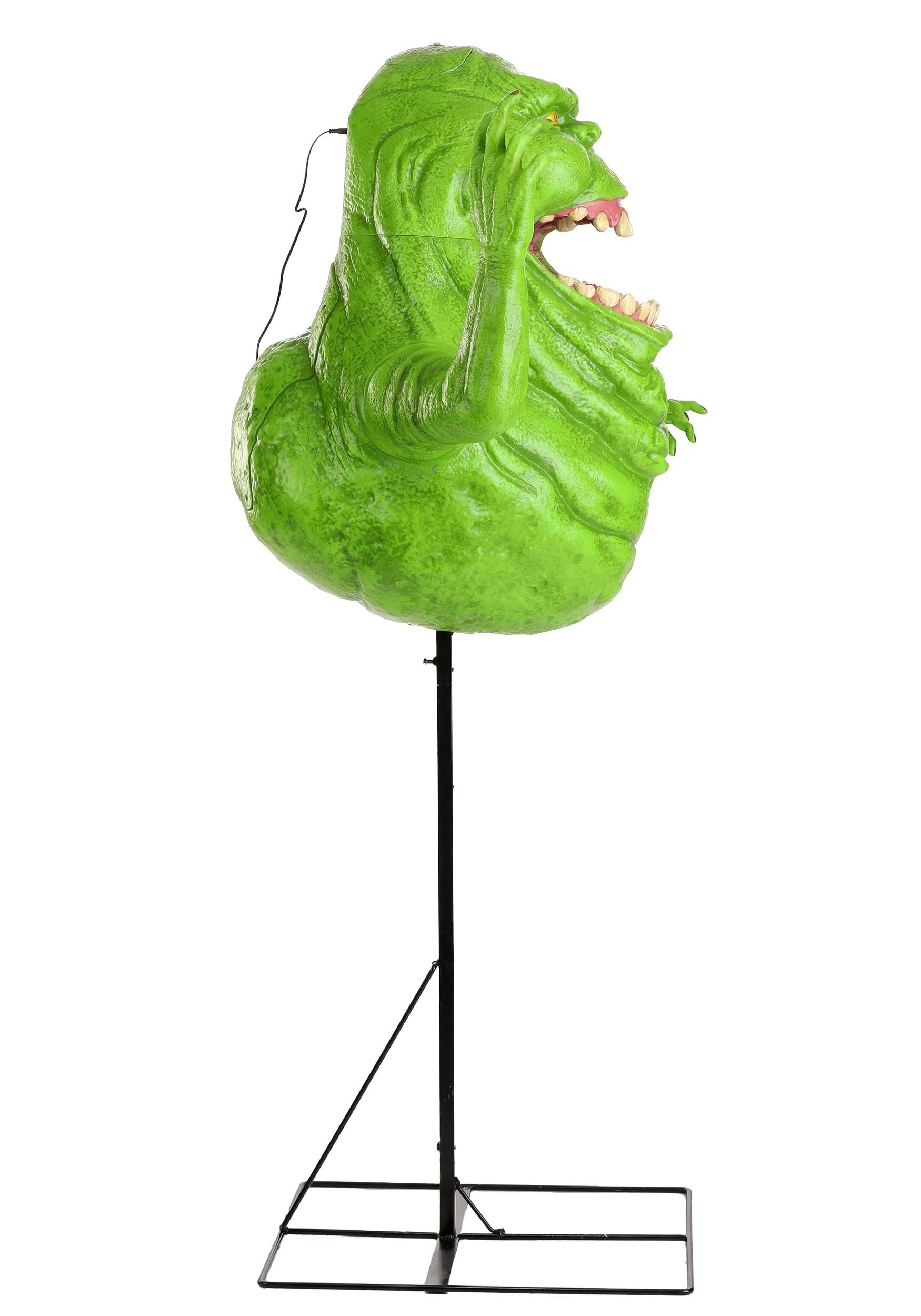 The animated Ghostbusters décor captures the green ghost in all his glory! The prop is molded and shaped into Slimer's green gelatinous-looking body, complete with texturing to give him a genuinely life-like (or maybe UN-life-like) appearance. The prop also recreates his mischievous grin with realistic teeth. Slimer sits on a sturdy stand, making him easy to place anywhere. The stand keeps him perfectly situated a 60 inches in the air, so he's hard for any guest to miss!