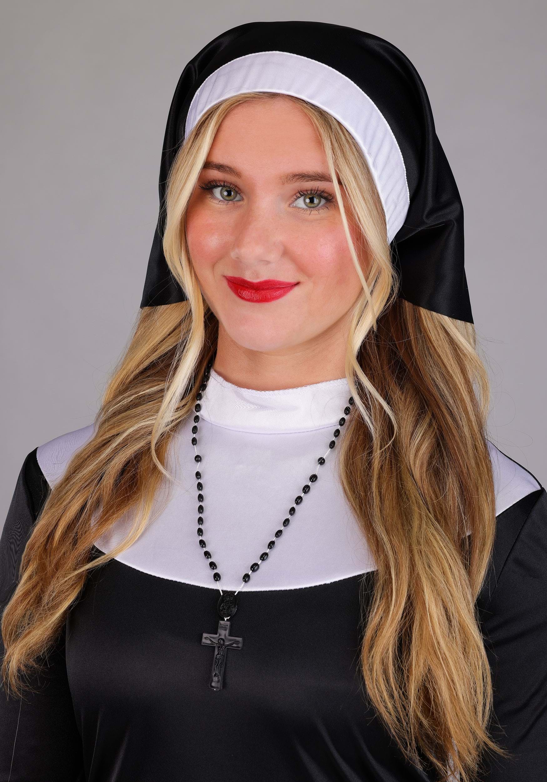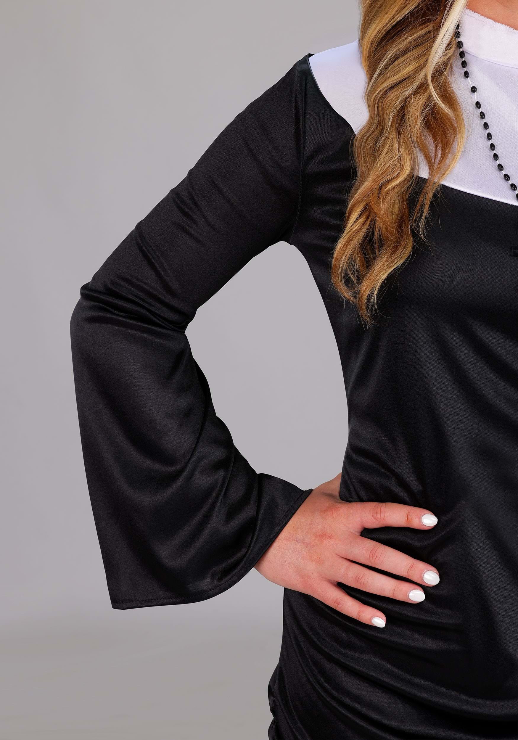 This is an exclusive Women's Naughty Nun Mini Dress Costume.