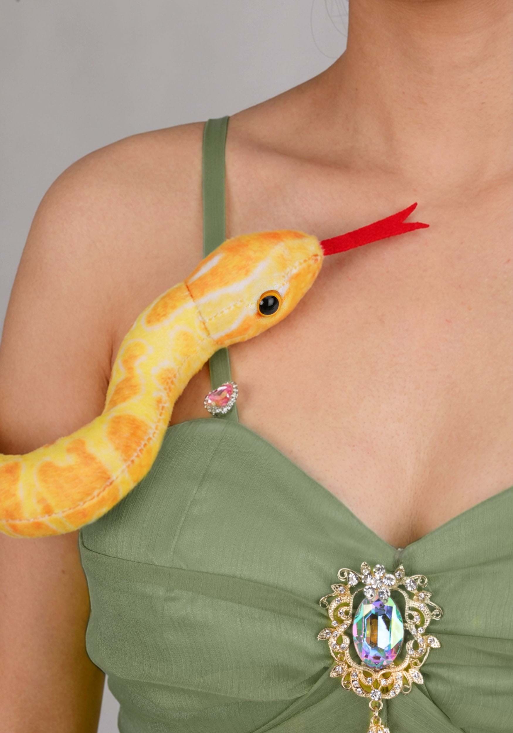 The shorts feature blue and purple tones with a flowing skirt panel along the side for extra movement while dancing. The included faux snake can be wrapped around your neck, giving the costume its signature serpentine pop star style.